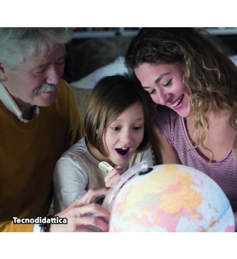 Jednocześnie stanowi ozdobę do pokoju każdego młodego odkrywcy, a wieczorem zastąpi lampkę nocną, tworząc niepowtarzalny nastrój, sprzyjający snom o dalekich podróżach. I bez obaw – jego użytkowanie jest zaskakująco proste. W celu podświetlenia podłącz produkt do prądu, by cieszyć się najlepszym efektem i głębią kolorów. Teraz wystarczy wybrać jedną z opcji tematycznych, po czym za pomocą dołączonego do zestawu, interaktywnego długopisu dotknąć punktu na kuli ziemskiej. Ten innowacyjny sposób nauki zagwarantuje nie tylko szybkie rezultaty, ale również wspaniale spędzony czas i dobrą zabawę. Produkt zapakowano w atrakcyjne, stylowe pudełko, by w mgnieniu oka stał się świetnym prezentem na każdą okazję.