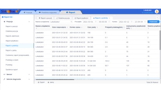 - Podgląd pokonanej trasy, prędkość, przebieg, czas parkowania itp.