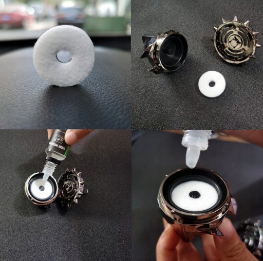 Odświeżacz posiada odkręcany tył i krążek na który można wylać dowolny olejek zapachowy lub perfum i stworzyć samemu idealny zapach do swojego auta.