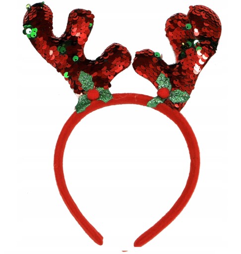 ŚWIĄTECZNY OPASKA Z ROGAMI RENIFERA Z KOLOROWYMI CEKINAMI.
