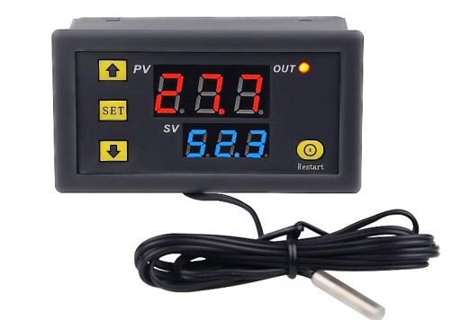 Sterownik W3230. Jeden z najbardziej popularnych i niezawodnych sterowników służących do włączania, wyłączania, sterowania różnych urządzeń, typy piece funkcyjne, grzejniki, szklarnie, tunele itp za pomocą temperatury. Sterownik samoczynnie włącza i wyłącza urządzenie przy zadanej temperaturze. Posiada pamięć trwała, tzn zadane dane nie giną gdy zabraknie prądu.