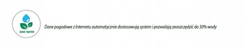 - Automatyczna regulacja pogodowa umożliwia zmiany codziennego czasu działania w celu zaoszczędzenia do 30% wody więcej
