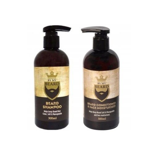 Szampon do brody to aż 300 ml płynu zamknięte w plastikowej butelce. Cały zestaw posiada identyczne etykiety – stonowane szarości i kremy, a w centralnej części logo marki, czyli broda w koronie. Butelka zakończona jest pompką, która bardzo ułatwia aplikację szamponu.
