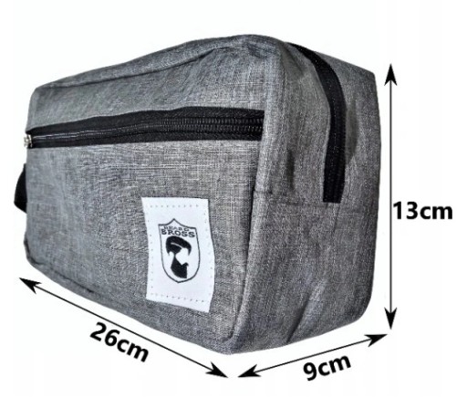 Kosmetyczka MĘSKA Beard Bross wykonana z niezwykle wytrzymałej i wodoodpornej tkaniny Oxford w kolorze szarym z czarną podszewką