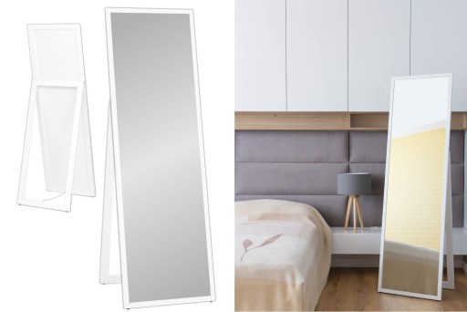 Możemy wykonać lustro stojące w wąskiej 2,5 cm ramie. Dostępne kolory biały i czarny, tył biały.