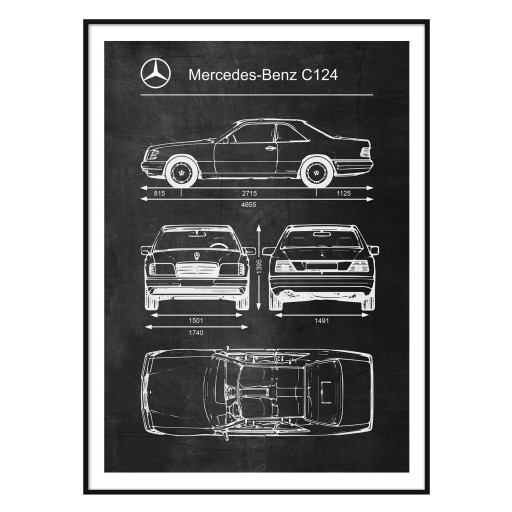 Постер Mercedes Benz C124 Ретро Патентная Схема A1+