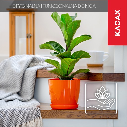 ЦВЕТОЧНЫЙ ГОРШОК НА ПОДСТАВКЕ С ПЛАСТИКОВОЙ КРЫШКОЙ ЦВЕТОЧНЫЙ ВАЗ 18см ОРАНЖЕВЫЙ KADAX