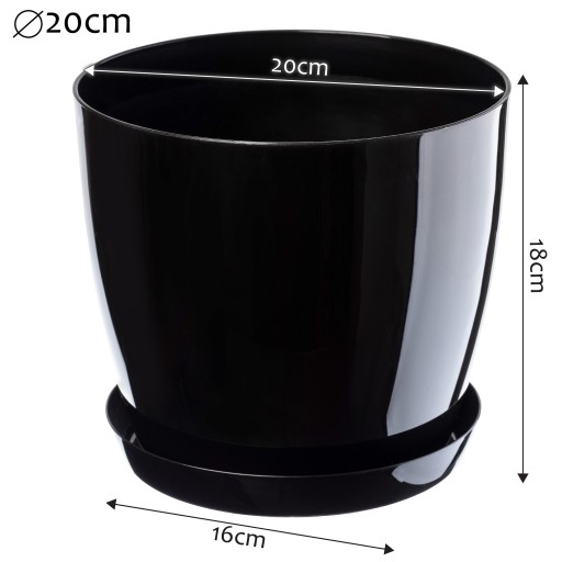 ЦВЕТОЧНЫЙ ГОРШОК С ПОДСТАВКОЙ ПЛАСТИКОВАЯ КРЫШКА ЦВЕТОЧНЫЙ ВАЗ 20см ЧЕРНЫЙ ДЛЯ ЦВЕТОВ KADAX