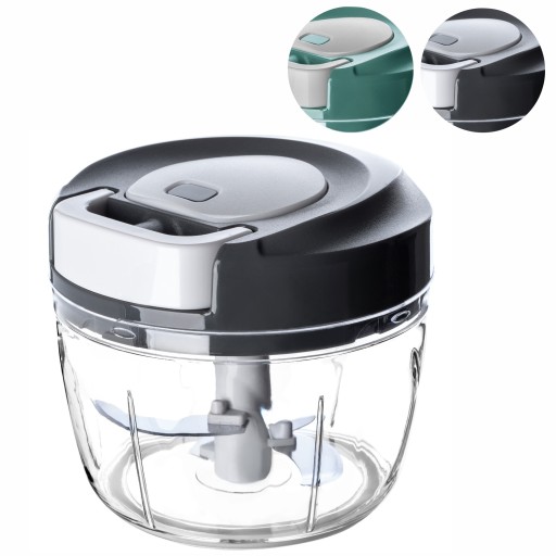 Żeby posiekać produkty, wystarczy włożyć składniki i pociągnąć za uchwyt na sznurku a obracające się ostrza natychmiast je rozdrobnią.