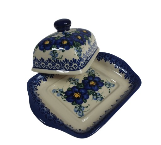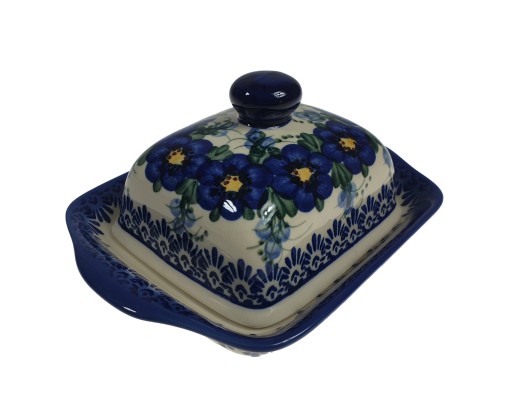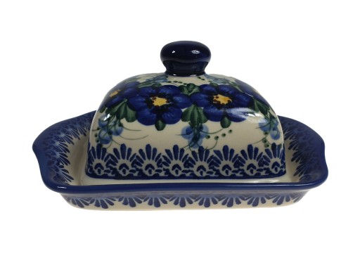 MASELNICA MALOWANA W TRADYCYJNEJ DEKORACJI BOLESŁAWIECKIEJ WIELKOŚĆ KOSTKI MASŁA .