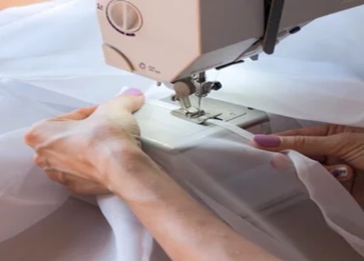 ( z jednej strony wiążemy sznurki i marszczymy w tym kierunku firanę . Wtedy sznurki są zabezpieczone przed ich wyciągnięciem . )