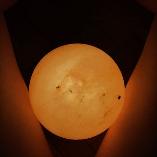 Lampa solna jest kloszem z kryształu soli w naturalnym, niepowtarzalnym, pomarańczowym odcieniu, oszlifowana na kształt kuli z małymi mało widocznymi nóżkami u podstawy.