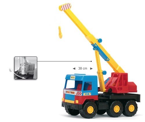 Middle Truck-dźwig - 37-centymetrowe auto z serii Middle Truck , charakteryzującej się bardzo dobrą konstrukcją i dużą wytrzymałością. Auto posiada wysuwany dźwig na 54 cm w górę oraz możliwość obracania nim dookoła. Do dźwigu dołączony jest hak, który można podciągać i opuszczać.