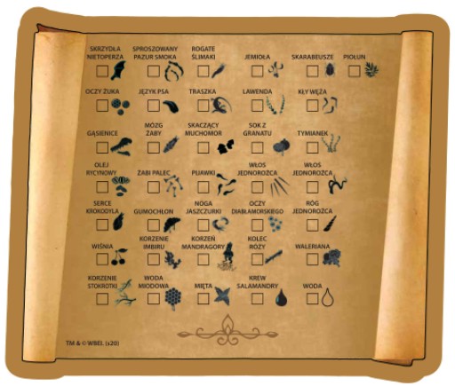 Na podstawie kart eliksirów gracze wędrując po szkole muszą zebrać składniki do stworzenia magicznych napojów i dotrzeć do pól startowych.