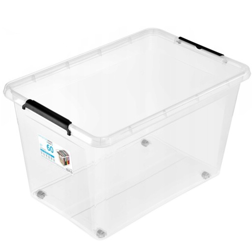 POJEMNIK PUDEŁKO PUDŁO ORGANIZER PLASTIKOWY PRZEZROCZYSTY Z POKRYWĄ 60 L