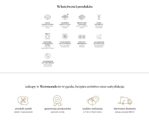 - Wykorzystano w nim 7- strefową sprężynę pocketową o wysokości 12 cm