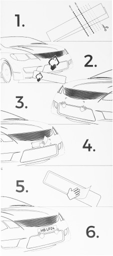 1. Podkładki pasują do tablic rejestracyjnych o różnych rozmiarach, od 380mm do 500mm w zależności od potrzeb można dowolnie podcinać. W tym celu należy przykleić załączony szablon, patrz rysunek 1.