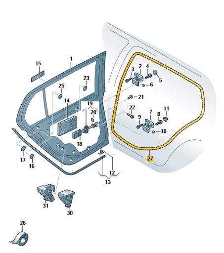 ПРОКЛАДКА ВНУТРЕННЕЙ ДВЕРИ. ПРАВА НА VOLKSWAGEN GOLF VII OE