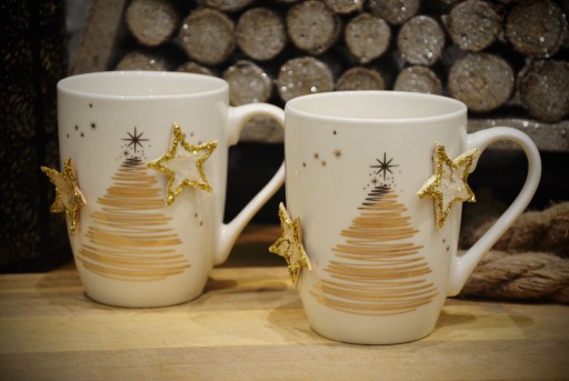 - komplet 2 pięknych, świątecznych porcelanowych kubków, pojemność 300 ml,