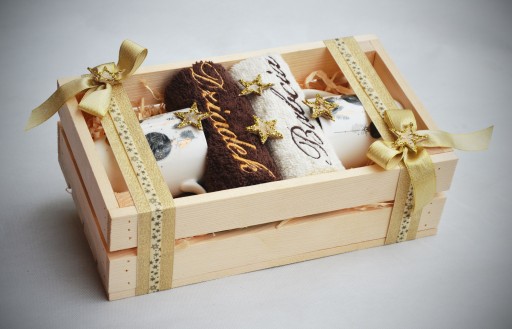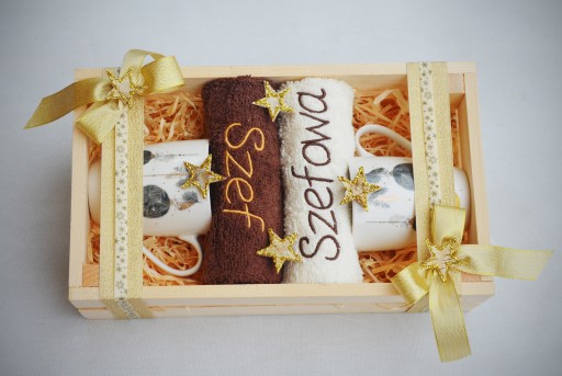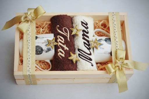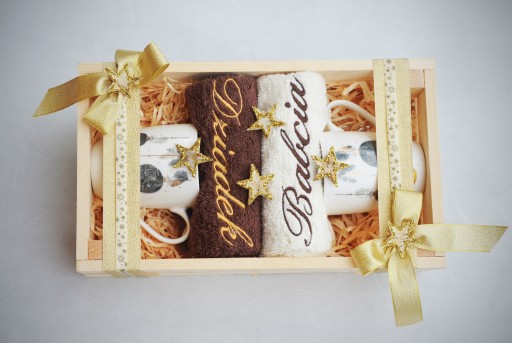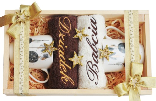 Piękny i praktyczny prezent na Święta Bożego Narodzenia - oryginalny zestaw porcelanowych, świątecznych kubków i ręczniki z haftem. Doskonały prezent pod choinkę dla rodziców, dziadków oraz szefa i szefowej.