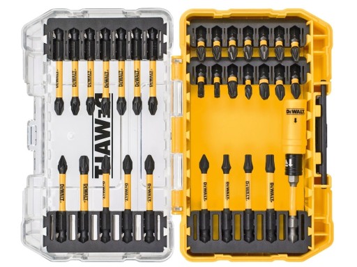 Najwyższej jakości bity wkrętarskie DeWalt FLEXTORQ ze specjalną strefą skrętną, która absorbuje maksimum momentu obrotowego i ogranicza wszelkiego rodzaju uszkodzenia. Producent zapewnia o dużej niezawodności i zwiększonej szybkości prezentowanych końcówek. Różnorodności bitów sprawia, że znajdą swoje zastosowanie w wielu sytuacjach, a cały zestaw może posłużyć jako praktyczny podarunek dla majsterkowicza.