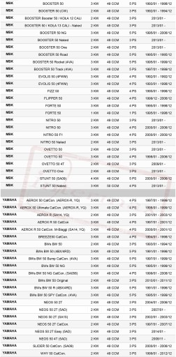 Główne zastosowanie to skutery marki YAMAHA 2T 50: