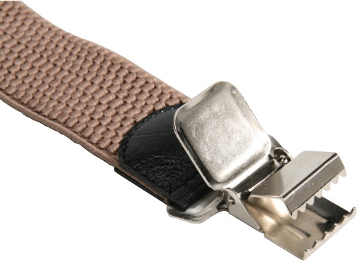 Guma z klamrami połączona jest skórą ekologiczną.