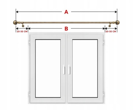 Karnisz powiniem być o około 40-60cm szerszy od wnęki okiennej. Długość w aukcji dotyczy samej rurki. Zakończenia " Luna" dodatkowo przedłużają ją o 0,5cm z każdej strony.