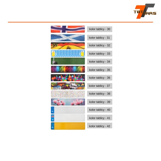 - W rubryce Uwagi do zakupu podaj swój napis w ramach widocznej dostępnej ilości znaków, ikon oraz opisz dokładnie kolorystykę zarówno tablic tłoczeń