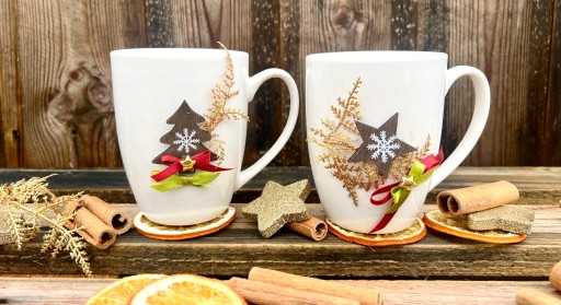 - komplet 2 pięknych, świątecznych porcelanowych kubków, pojemność 300 ml,