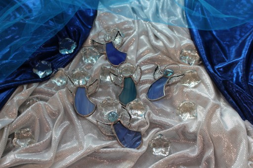 Szkło wycinane jest ręcznie i połączone miedzią oraz cyną. Aureolka wykonana jest z miedzianego ocynowanego drutu.