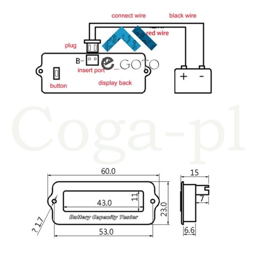 - Miernik pojemności baterii litowych 8-63V i akumulatorów kwasowych 6 - 48V w obudowie - 1 szt