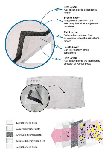3. Trzecia warstwa: tkanina z węglem aktywnym, benzen i mniejsza funkcja filtrowania mikronów pyłu