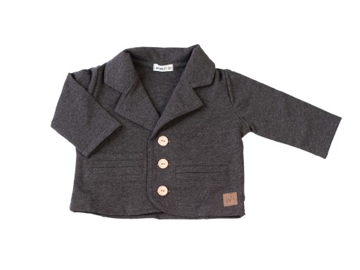 Garniturek wykonany z dzianiny dresowej w składzie 95% bawełna 5% elastan. Marynarka zapinana na trzy eco guziczki. Po bokach imitacja kieszonek .