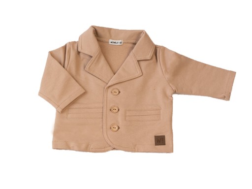 Garniturek wykonany z dzianiny dresowej w składzie 95% bawełna 5% elastan. Marynarka zapinana na trzy eco guziczki. Po bokach imitacja kieszonek .