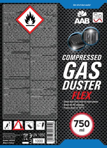 Produkt jest mieszaniną gazów pod wysokim ciśnieniem. Służy do usuwania kurzu i innych luźnych zanieczyszczeń ze sprzętu komputerowego, RTV, AGD i innych urządzeń. Nie wstrząsać pojemnikiem bezpośrednio przed użyciem.