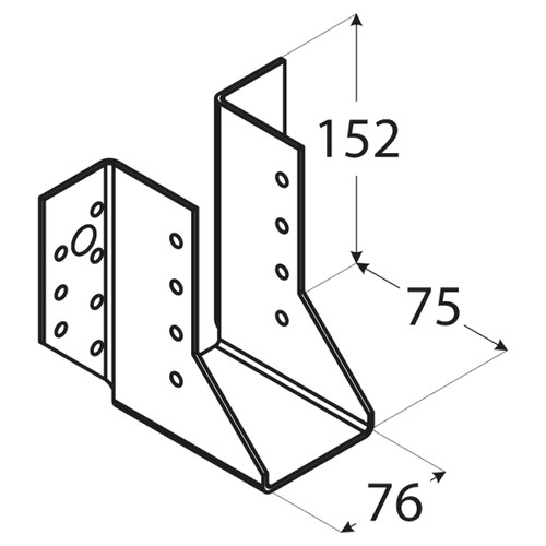 Standardowy wieszak belki umożliwiający montaż bez szczeliny pomiędzy łączonymi elementami. Dodatkowe, duże średnice otworów sprawiają, że można je stosować również przy mocowaniu belek do betonowej ściany.