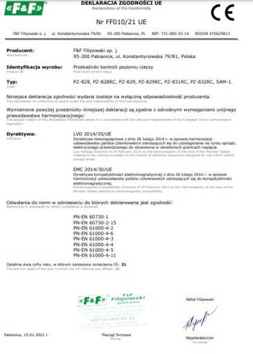 PRZEKAŹNIK ZALANIA PRZELANIA DO KONTROLI PZ-828