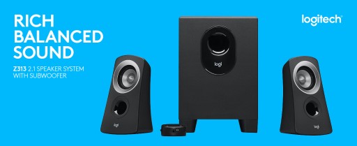 Zestaw głośników Logitech Z313 emituje wyraźny dźwięk i czyste basy przy niewielkich wymiarach. Podłącz te głośniki komputerowe, a usłyszysz doskonały dźwięk bez względu na ich rozmieszczenie.