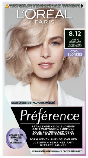 L'Oreal Preference Cool Blondes Farba do włosów 8.12 jasny popielaty beżowy blond