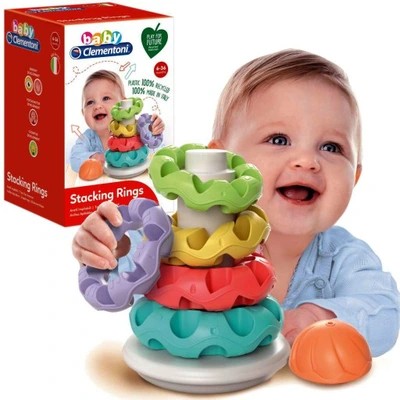 Kolorowa Wieża Piramidka od Clementoni składa się z pięciu pierścieni o różnych wymiarach,
