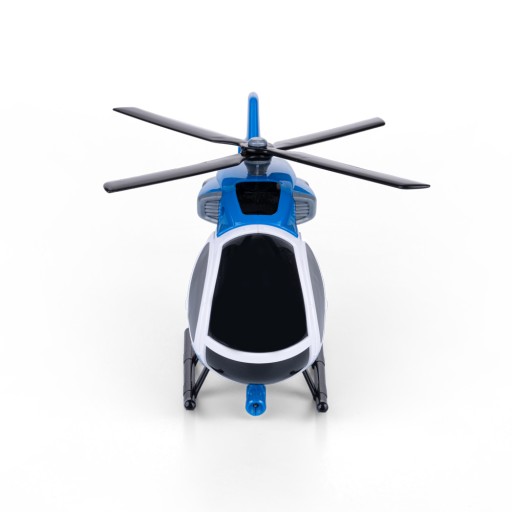 Helikopter z serii midi z ręcznie obracanymi śmigłami. Zabawka posiada z boku przyciski aktywujące realistyczne odgłosy oraz światełka.