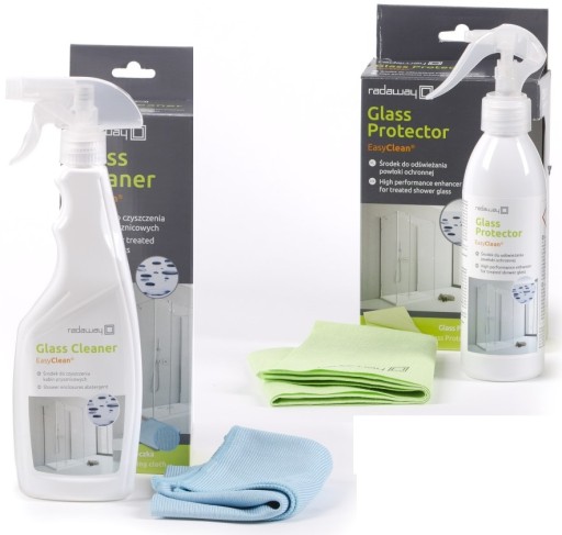 Komplet środków do kabin prysznicowych Glass Cleaner i Glass Protector.