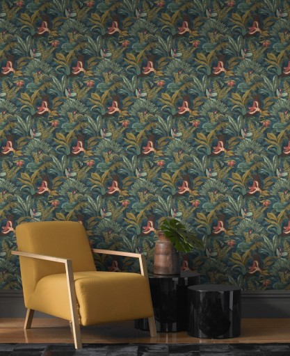ОБОИ ЛИСТЬЯ, ПТИЦЫ, ЦВЕТЫ, ВИНИЛ НА НЕПОЛЕВОМ