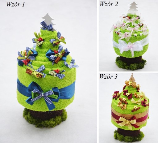 Oryginalny prezent na Święta Bożego Narodzenia - ręczniki zwinięte w choinkę. Doskonały prezent na święta dla rodziców, dziadków, rodzeństwa, znajomych.