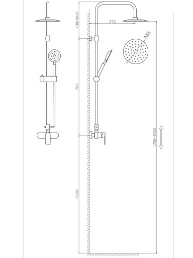 - wysokość prysznica: 170 - 200 cm