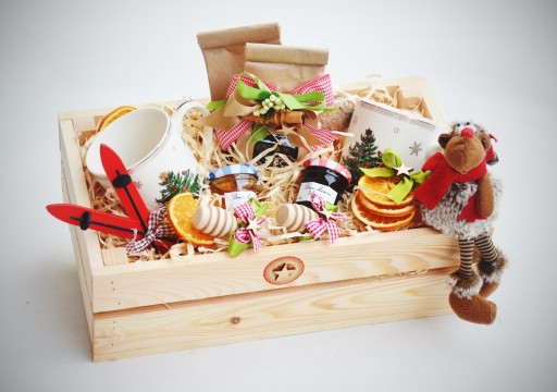 Piękny i praktyczny prezent na Święta Bożego Narodzenia - oryginalny zestaw porcelanowych, świątecznych kubków, pyszna herbata owocowa i czarna, miód, dżemik, łyżki do miodu, dekoracje świąteczne: narty, renifer, suszone pomarańcza. Całość pięknie ozdobiona i zapakowana. Doskonały prezent pod choinkę dla najbliższych, znajomych, szefa, szefowej, wychowawczyni.
