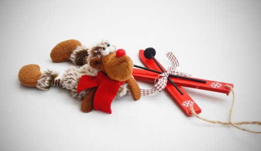 Świąteczne dekoracje: narty i renifer