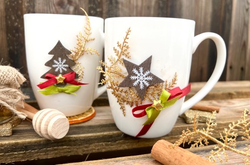 - komplet 2 pięknych, świątecznych porcelanowych kubków, pojemność 300 ml,