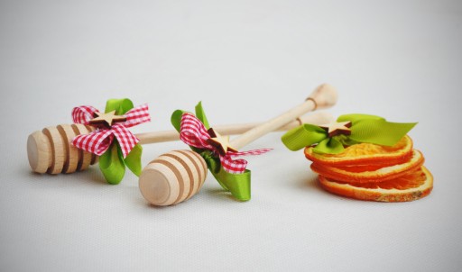 - 2 łyżki drewniane do miodu,